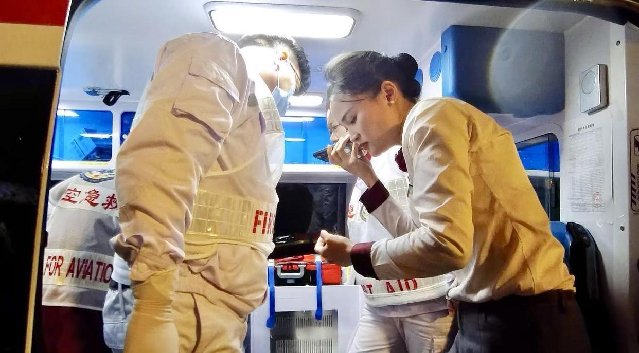 乘务长一边安抚旅客,一边安排乘务员为其擦去汗渍,同时通过机上广播寻找客舱内的医务工作者。幸运的是,有两名医生旅客前来协助,乘务组为医生拿来急救箱、应急医疗箱等物品,乘务员钟瑶及时送上糖水为旅客补充能量,在大家的共同努力下,旅客意识逐渐清晰,各项生命体征趋于正常。